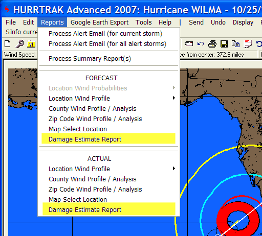 The report is run by selecting it from the drop down Report menu. It can be run for the latest forecast or the actual observations of the storm