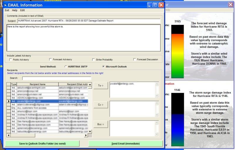 As you can see the report calculates two indexes, one for wind damage and the other for Storm Surge Damage. It is important to separate these two factors as some locations are more prone to storm surge flooding than other areas... at the same level of wind. The report's descriptive scale is meant to only give a general idea of how the index value compares to past storms. The difference in actual damage may not be significant for storms that are described as extreme and extensive but you can be fairly confident that a storm with an extreme rating will be more damaging than one with a minor or moderate one. Finally, the current storm is compared to past storms with "similar" index values. The report will show up to 3 comparative storms for both wind and storm surge.