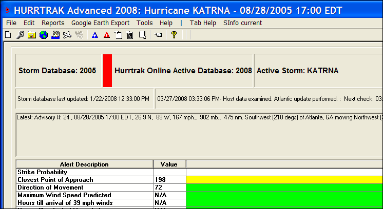 Default vs. Active Hurrtrak Online Database