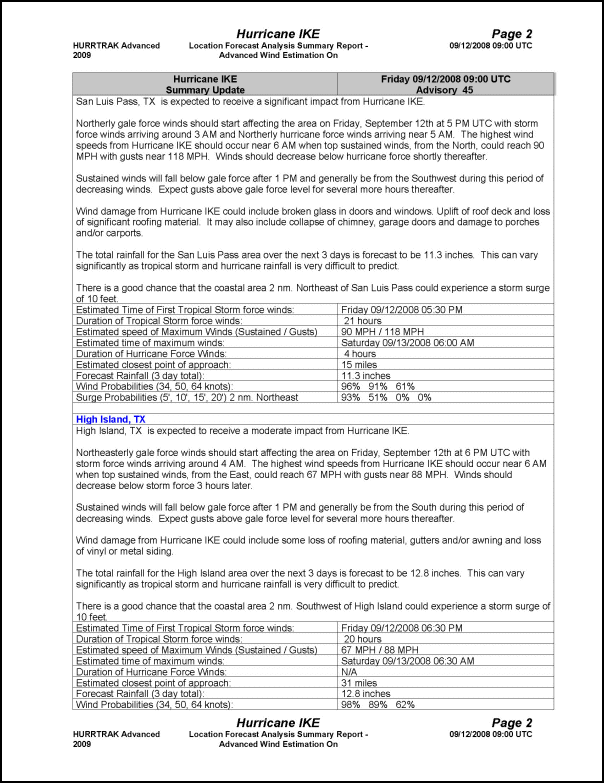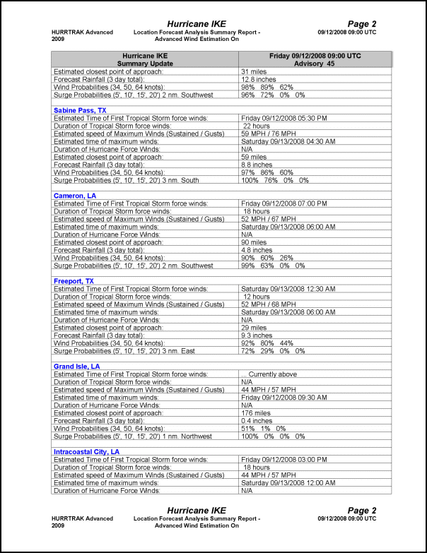 This "user friendly" type report is generated from the Print/Export option while viewing a location, county or zip code summary impact report. It can be emailed, printed, saved as a PDF or exported to HTML.