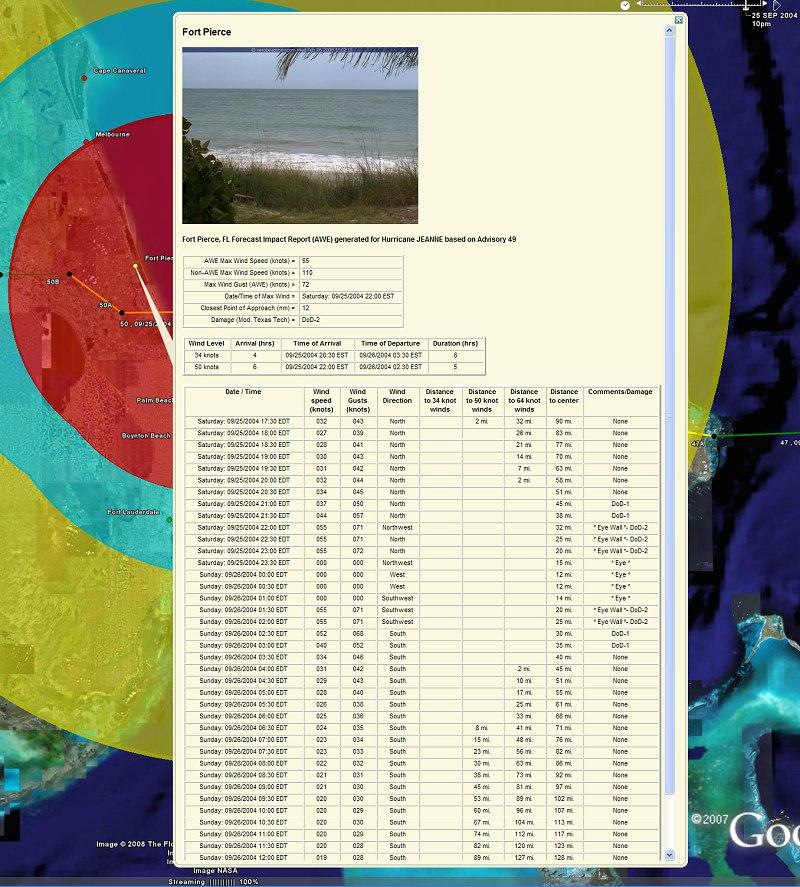 In addition, the user can export the report to Google Earth with the detailed hourly forecast data included. This is a menu option while viewing the report.