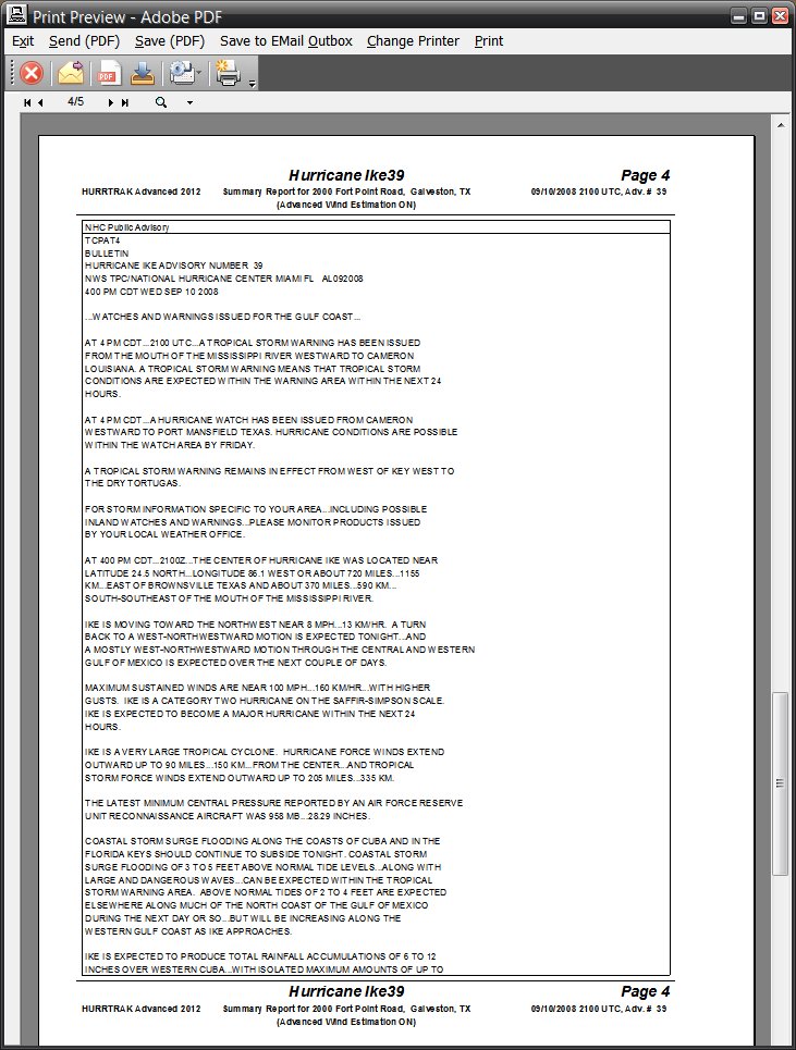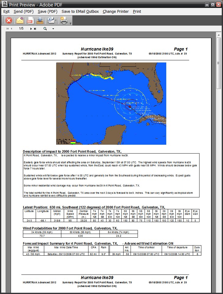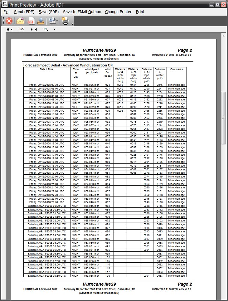 The E-Z Report was initially designed for new users of the Hurrtrak system to assist them in being immediately productive... by easily creating a forecast impact report for a particular location. In reality, it has turned out to be a useful tool for all levels of users.
