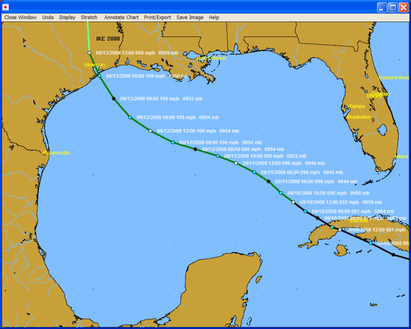 Display Chart Notes - Displays storm observation information next to the observation points. If the points are close together, some chart notes will not plot to prevent overwriting.