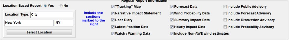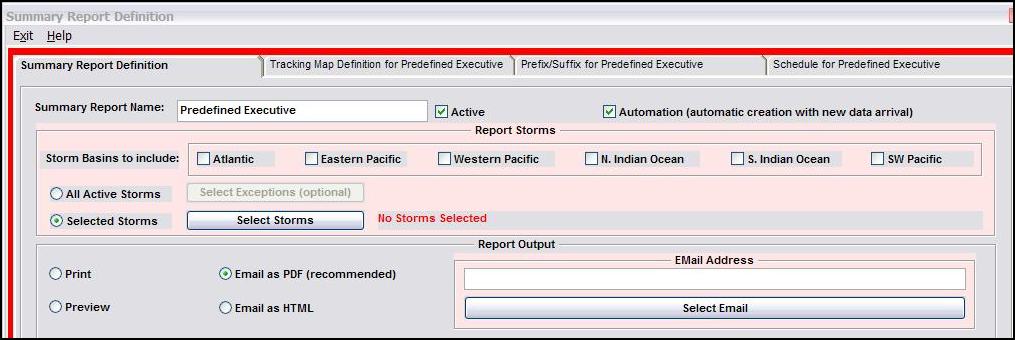 are no storms selected (the Selected Storms option is on) and finally no Email address