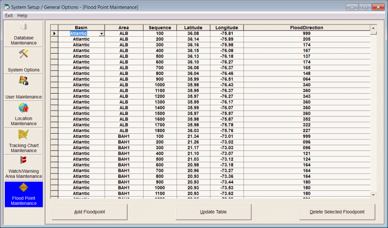 If you modify the flood point database, we would be interested in getting a copy of these additions or changes for possible incorporation into future releases.