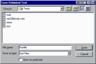This option allows the user to export certain text reports and data to a comma delimited format..  This data file will then easily import into many database and spreadsheet applications.  When this option is selected a file dialog box is displayed requesting the name of the file the user would like to create.