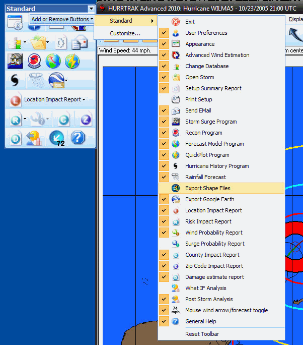Hurrtrak System includes extensive use of Tool/Command bars.