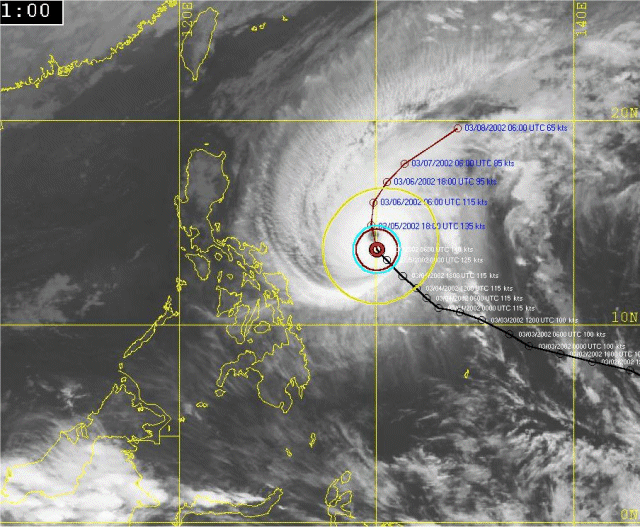 Hurrtrak Online users are able to plot a storm on certain satellite, Sea surface temperature and Radar images. They can be selected from the "select satellite image" command button or the Satellite image drop down list on any of the "fixed map" tabs. The source for these maps are from 3rd party free Internet web sites.