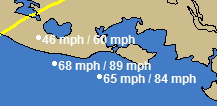 In this mode, a left click will display the forecast wind speeds (sustained and gusts)