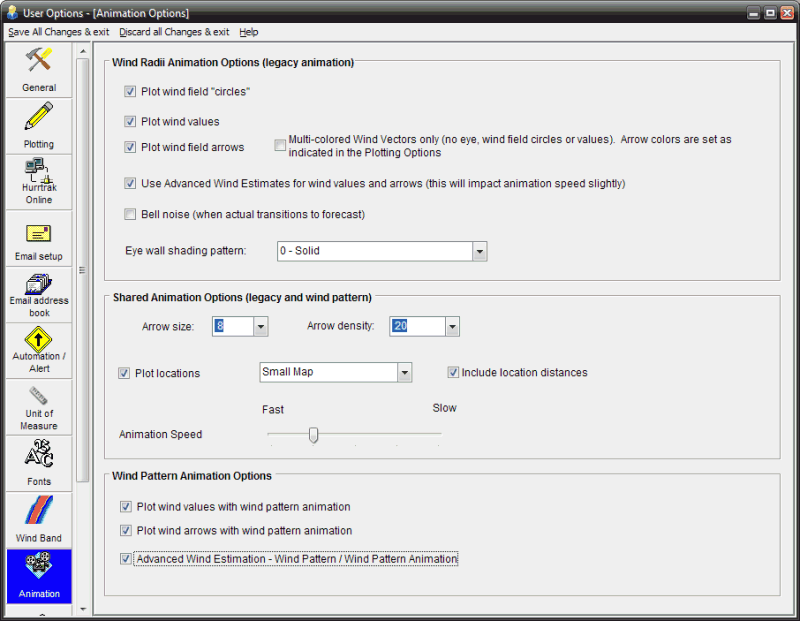 This option controls whether the 64, 50 and 34 knot wind field "circles" are displayed during animation.