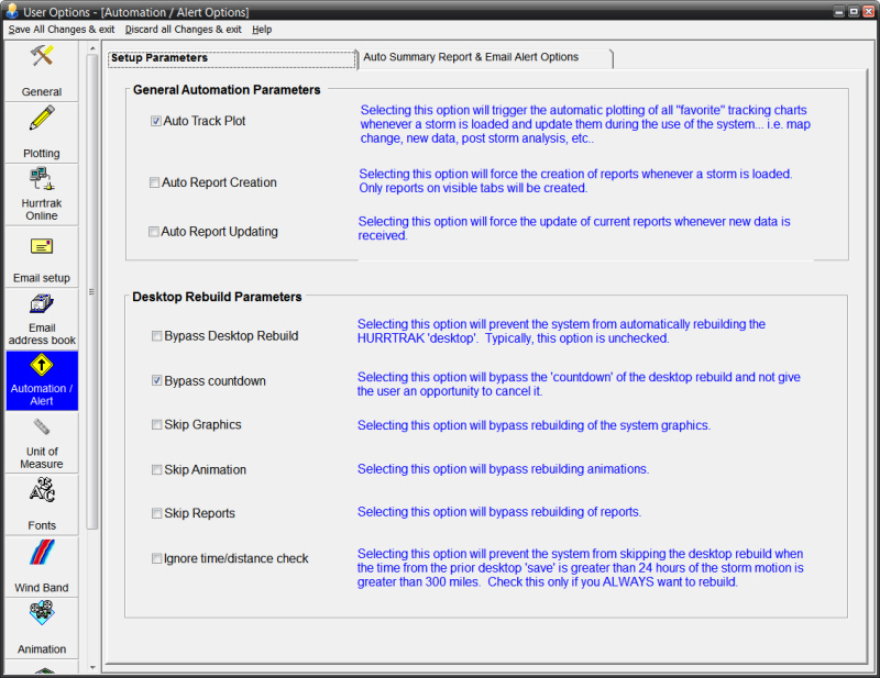 This option allows the user to maintain Automation/Alert preferences. Point  and click on the options shown above for a description of what they control.