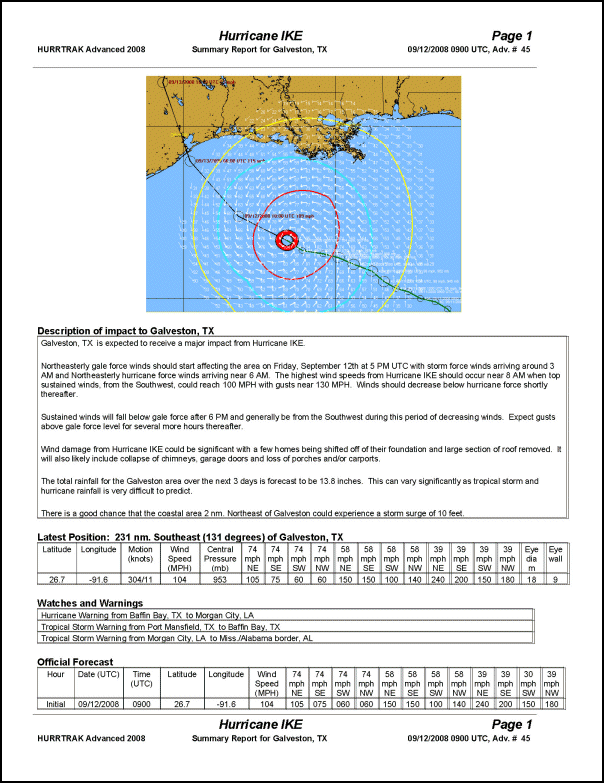 position information, watches / warnings, official forecast information, wind probabilities