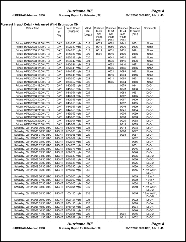 (when available) forecast impact summary, forecast impact detail, and NHC advisory
