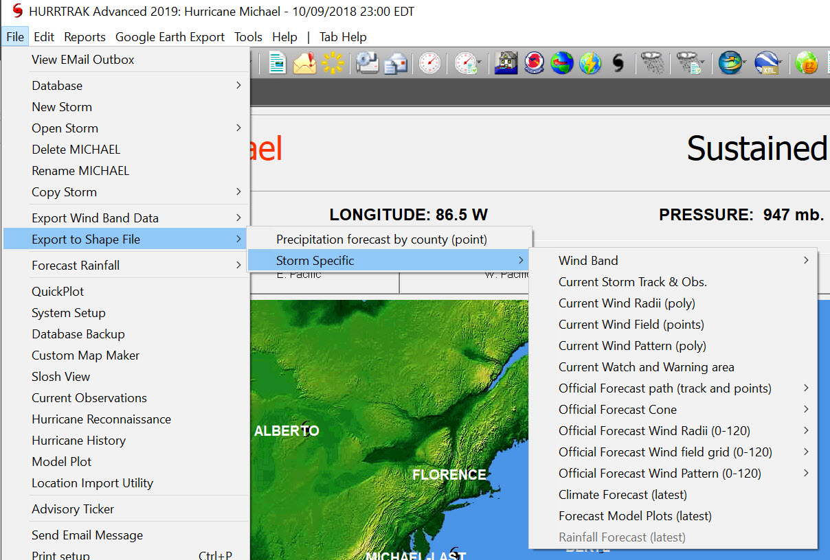 forecast data. Graphic-type Shape files for the currently loaded storm can be created