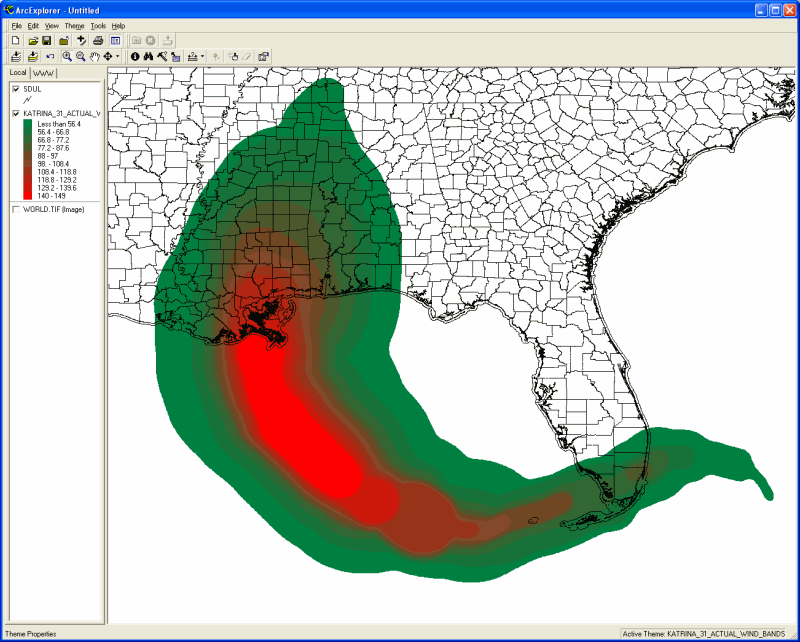 examples of data being displayed on ArcExplorer ESRI, are shown below.