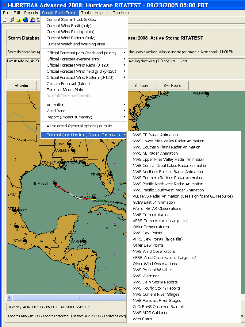 One of the options within the Google Earth Export option is "External (non Hurrtrak) Google Earth Data".
