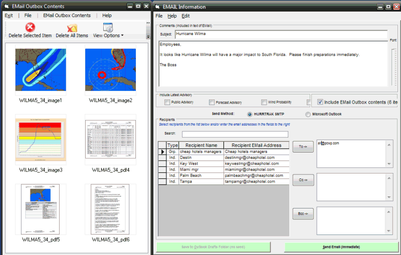 email Outbox is a way for the user to select a group of Hurrtrak outputs