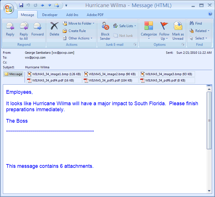 receive the following type of e-mail with multiple attachments.