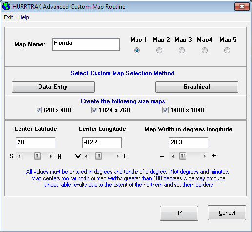 NOTE: You may select the desired custom map area by selecting the graphical option instead of the data entry option.
