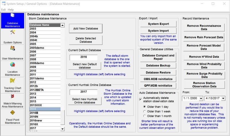 This option allows the user to setup/maintain system wide parameters in addition to the maintenance of users, locations, tracking charts, databases, and more. This is especially important in network installations as these are the settings that ALL users will share. Individual user preferences are maintained in the Tools-User Preferences function.