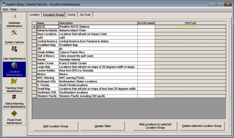 To Change a location group's information, make the required changes and select the update table option.