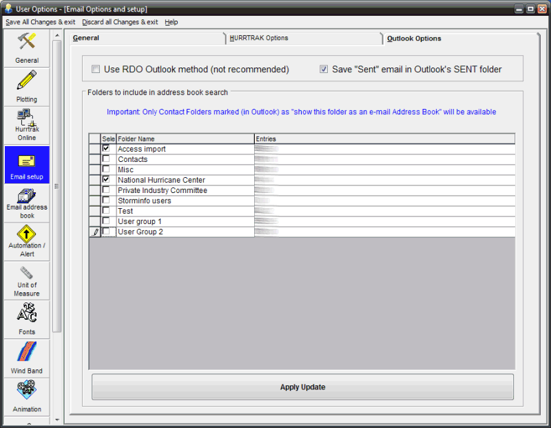 1. RDO Outlook Addressbook option - We do not suggest using this option unless