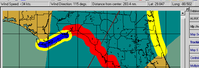 This status bar indicate cursor positional information of likely wind speed/direction, distance from center, latitude and longitude.