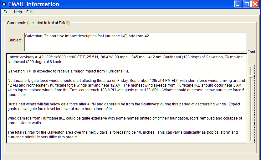 of the potential wind, rain and storm surge impact to a location. This can be viewed