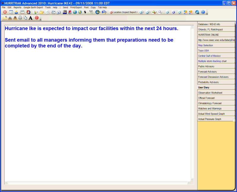Description: This tab displays user comments for the current advisory for the current storm.